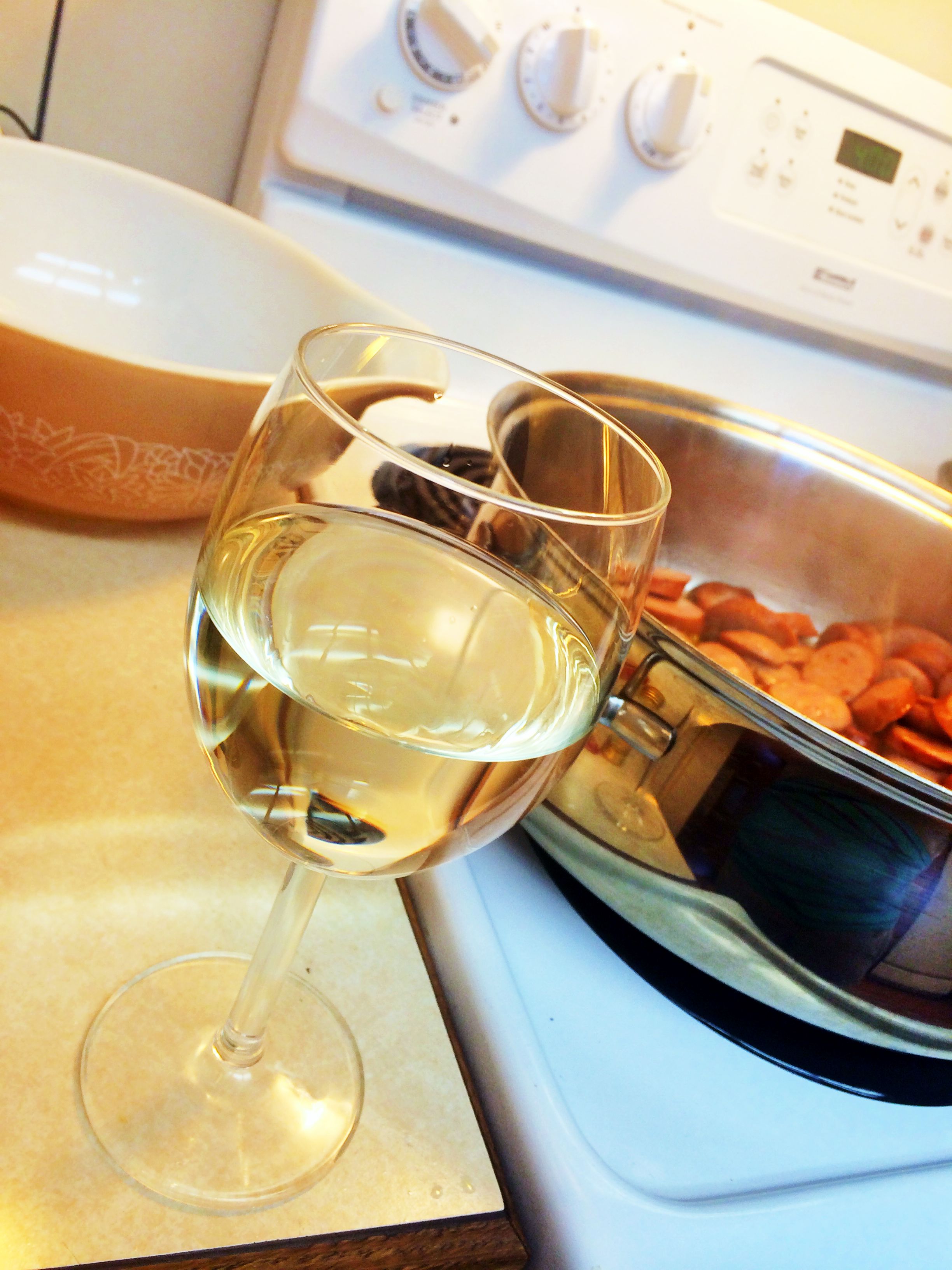 Luckily enough this recipe calls for wine. And it only needs a cup, so since I’m not a fan of waste… first things first, pour myself a glass.