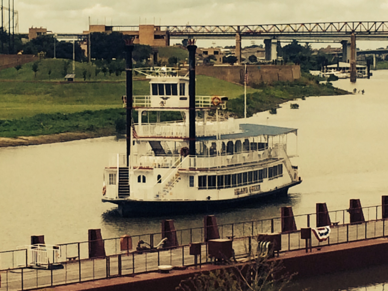 Yesterday I took a 90 minute riverboat trip aboard the Island Queen. We sailed down and back up a small section of the Mississippi river. The tour guide was funny and shared lots of interesting information about the river, Memphis and Mark Twain. There wasn’t much to see – you don’t go very far, and the Arkansas side is pretty much all trees, but it was a welcome break from the heat (the inside had A/C) and the tour guide made it worth it. I know there are longer cruises you can go on and I’ve now set my sights on one day sailing from St. Louis to New Orleans on an 8 day cruise. It’s pretty pricey ($4000+), but I imagine it would be a great time.